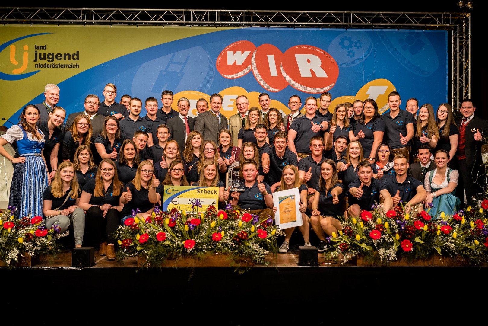 Am Tag der Landjugend konnten auch heuer wieder tausende Landjugendliche ein erfolgreiches Jahr Revue passieren lassen. Am 16. März 2019 standen die Highlights des vergangenen Jahres im Rampenlicht der Messehallen in Wieselburg. „WIR gewinnt“ beschreibt, wofür die Landjugend schon seit über 70 Jahren steht: Gemeinsam die Welt von morgen zu gestalten und dabei Freundschaften für’s Leben zu schließen. Mit dieser Kombination konnten die verschiedenen Landjugendgruppen im vergangenen Jahr unzählige Erfolge erzielen. 42 Stunden für den guten Zweck Der Projektmarathon sorgte auch dieses Jahr für großen Jubel. Beachtliche 79 Gruppen aus ganz Niederösterreich stellten sich diesmal der Herausforderung. Die beeindruckenden Ergebnisse wurden am Tag der Landjugend zusammengefasst und prämiert. 33 mal Gold, 28 mal Silber und 13 mal Bronze wurden im Zuge des Festaktes insgesamt verliehen. Den Landessieg holte sich die Landjugend Neustadtl an der Donau mit ihrem Projekt „Wir bauen ein Haus, das VEREINT“. Am ehemaligen Sportplatz wurde ein Klubgebäude errichtet. Beim Projektmarathon erhält jede Gruppe eine Aufgabenstellung, die binnen 42,195 Stunden erledigt werden muss. Diese Aufgabe wird von einem Projektbetreuer der Landjugend und der zuständigen Gemeinde beschlossen und bis zum Tag der Ausführung geheim gehalten. Die vielfältigen Aufgaben reichten heuer vom Gestalten von Freiluftklassen, über Drehen eines Image-Films, bis hin zum Erzeugen von Apfelsaft. Nach Bekanntgabe des Projekts am Freitag starten die Teams sofort mit der Planung und Ausführung der Aufgaben und können selbst Zusatzaufgaben gestalten. Am Sonntag muss das Projekt der Gemeinde im Zuge einer bestehenden oder eigenen Veranstaltung präsentiert werden. Zusätzlich zur Ausführung muss die Gruppe eine Mappe gestalten und einen Webblog auf www.projektmarathon.at führen, auf dem sie ihre Arbeitsschritte und besondere Momente dokumentieren. Abschließend erfolgt die Präsentation des Projektes vor einer Jury. All diese Komponenten führen zu dem Ergebnis, das am Tag der Landjugend erstmals offiziell verkündet wird.