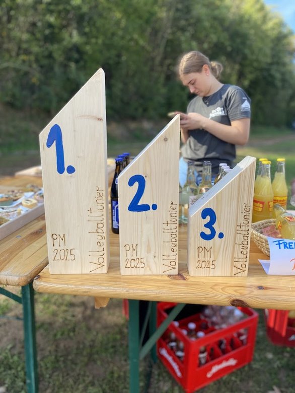 "Auch für den sportlichen Teil wird gesorgt: Die Landjugend fertigt Pokale für das Volleyballturnier an, dass am Nachmittag stattfinden wird.