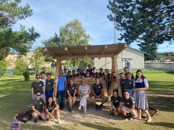 Zurück im Landjugendraum wartete schon die Lagebesprechung. Viele Ideen – und noch mehr Meinungen. Kurz darauf machten wir uns auf, um Pflanzen und Materialien zu besorgen. Währenddessen hörte man am Bauplatz bereits laute Stimmen. Die Burschen hatten Schaufeln, Beton und endlose Diskussionsfreude. Ausgraben, Betonieren, Verwerfen, Neuplanen – ein echter Marathon, nur eben ohne Ziellinie.