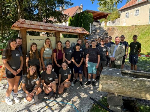 Heite is Endspurt augsogt! De Zeit is boid aus, denn um 14:30 Uhr wird des Projekt scho an de Gemeinde übergeben. Des is ois sooo sponnend, mir klappern de Storchnknie!