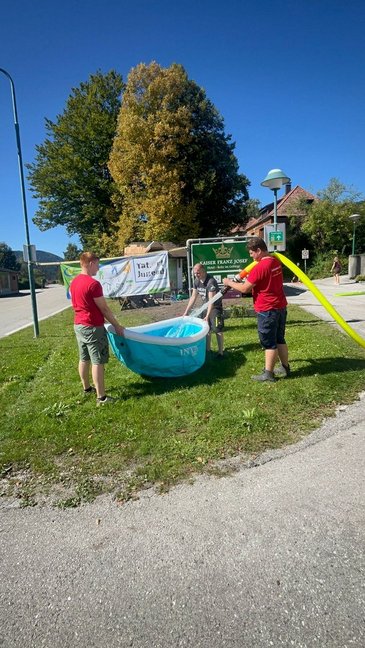 I glaub owa, dass des Highlight des Tages definitiv des Planschbecken sei muass! Jo genau, wir hom a Planschbecken aufgestellt. Bei soichen Temperaturen wie heite braucht ma jo a Abkühlung!