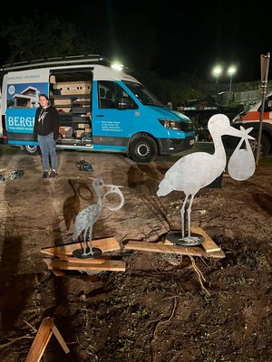 Ideen für den Storchenpark san a scho gesammelt woan – geeinigt hom sa sie jetzt auf Störche aus Metall – de werden per Plasma-Laser ausgeschnitten, damit se sämtliche Witterungen überstehen. Echt coole Idee find i!