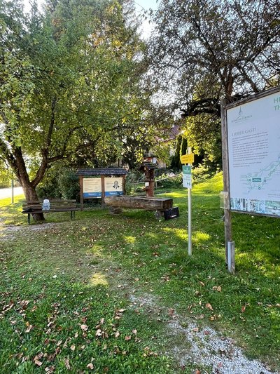 Von hier aus gehen drei Wanderrouten weg, bei denan ma de Gemeinde anhand von Sagen und alten Erzählungen super kennenlernen kann.