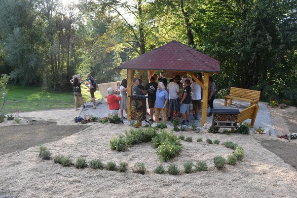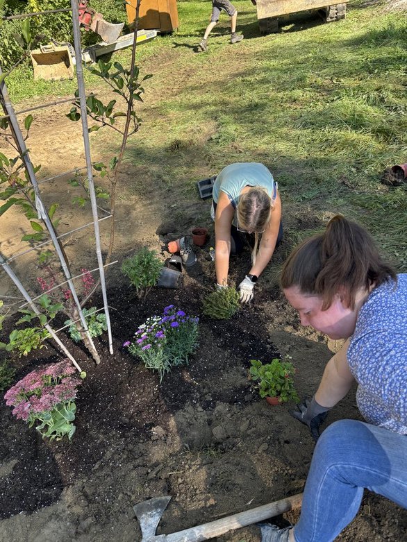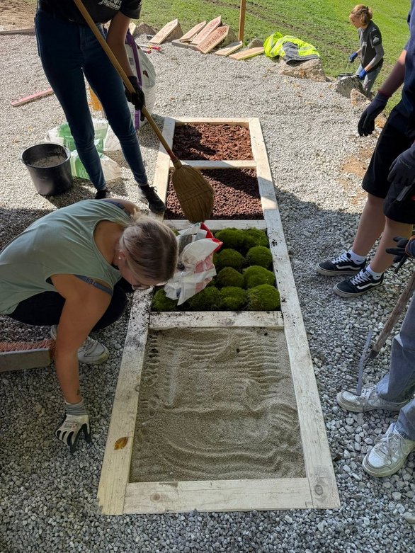 Nachdem der Humus angeglichen wurde, machten sich unsere Mädels auch schon ans Werk und gestalteten zur Verschönerung unseres Mostbrunnen´s ein Staudenbeet. Außerdem setzten ihnen die Burschen die Balken für unseren Barfußweg der daraufhin mit diversen Naturmaterialen befüllt wurde. Auch unsere Insektenhotels sowie Infotafel durften ihren Platz finden. Die Infotafel, welche immer wieder von uns mit vergangenen Veranstaltungen im Sprengeljahr befüllt wird, dient dazu unsere Besucher immer auf dem Laufenden zu halten, denn bei uns wird es nie Fad.