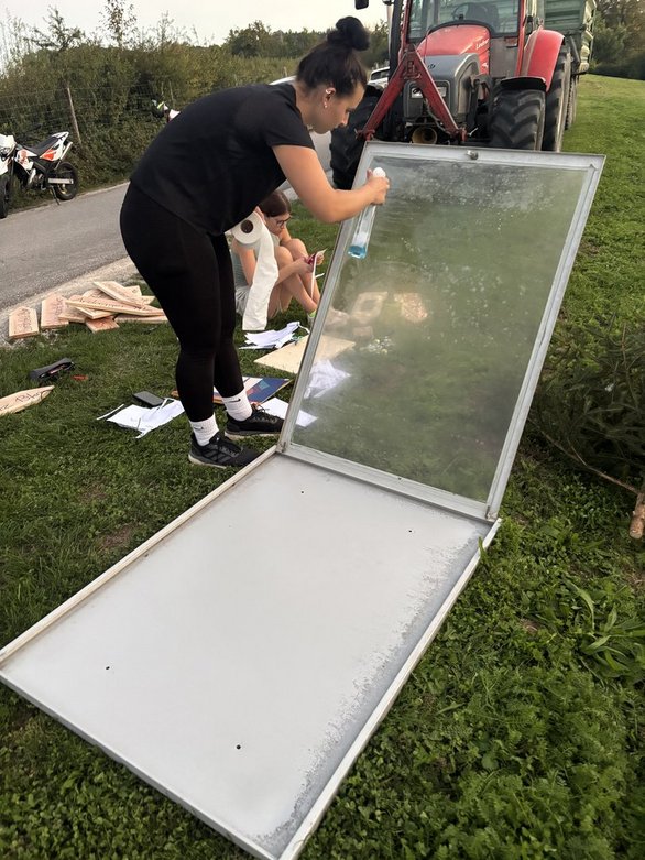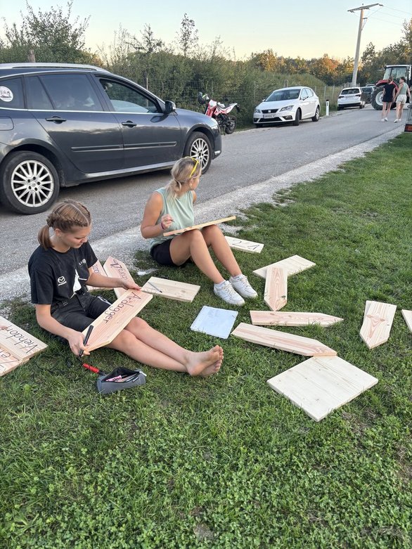 Nach wenigen Stunden schlaf ging es in den frühen Morgenstunden voller Motivation weiter. Während unser Team Holz weiter hobelte und strich, fuhren die Mädels los um die letzten Besorgungen zu erledigten, um unsere Kreativen Ideen umsetzen zu können.