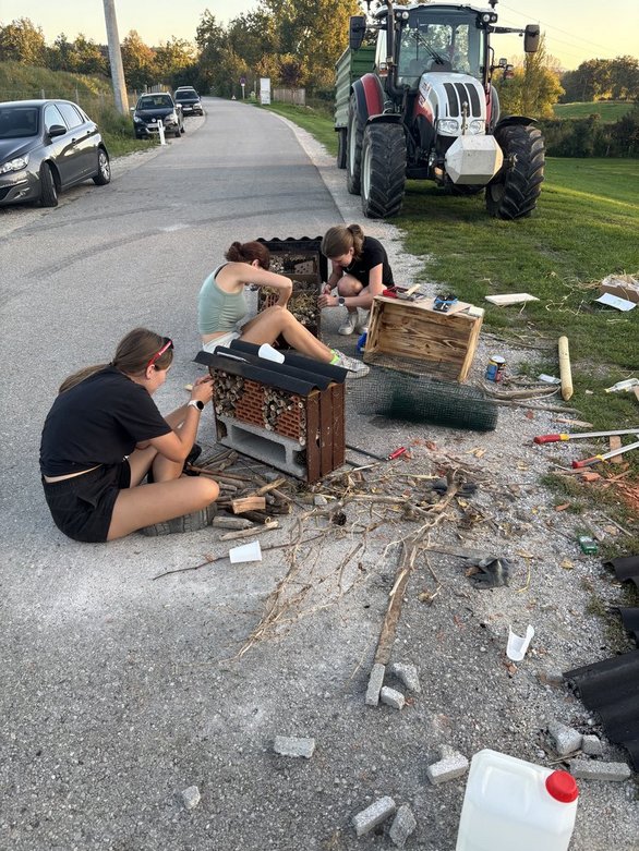 Währenddessen sammelten die Mädels Naturmaterialien für das Insektenhotel und stellten dieses mit viel Kreativität und Einsatz fertig.