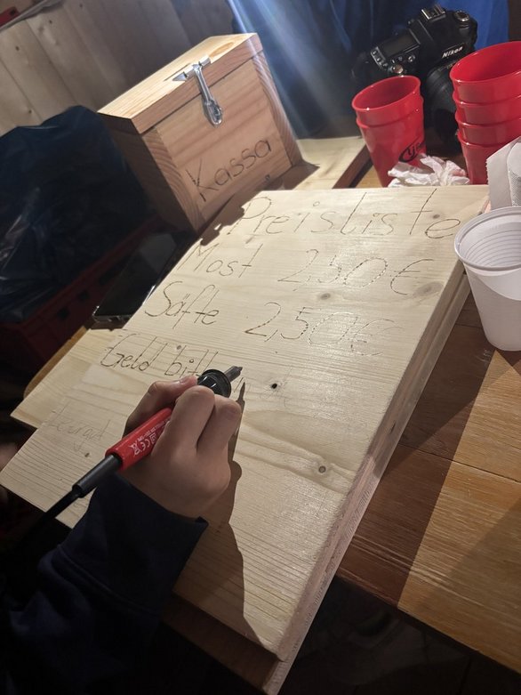 Außerdem wurden für unseren Mostbrunnen eine Preisliste, eine Kassa sowie Leergutbox gefertigt und alles für unsere geplante Informationstafel vorbereitet.