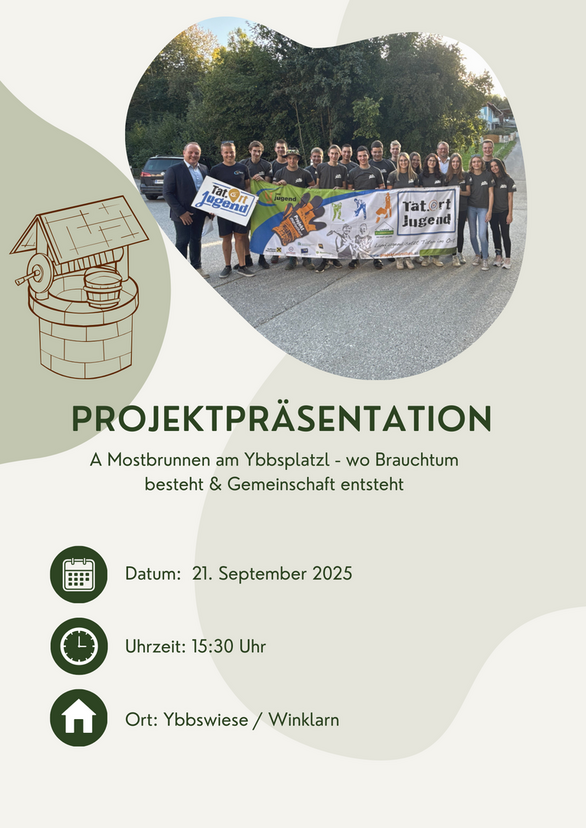 - Auf der Ybbszugangswiese soll ein Mostbrunnen entstehen, mit Überdachung und Brunnen.
