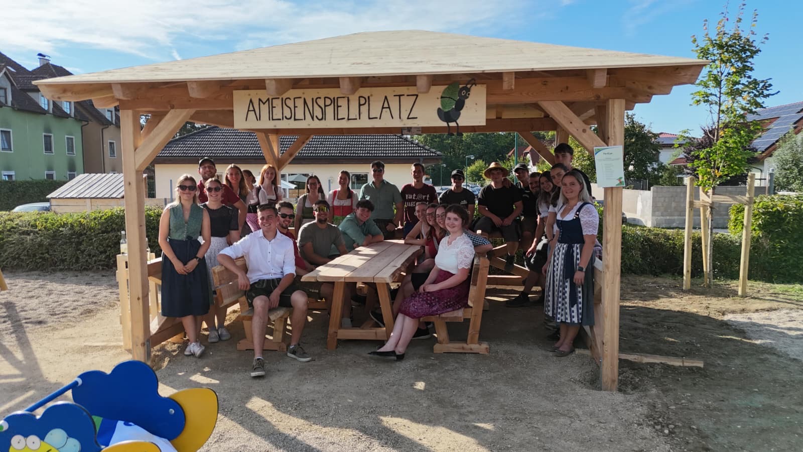 Nach dem gemeinsamen Mittagessen haben sich unsere Mitglieder nach Hause begeben um sich frisch für die Präsentation um 15:00 Uhr zu machen. Somit war der gemeinsame Treffpunkt mit Dresscode “Tracht” um 14:30 Uhr beim Spielplatz fixiert.