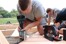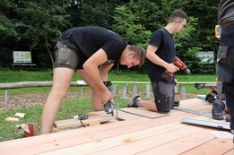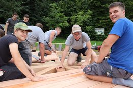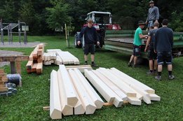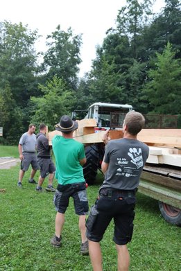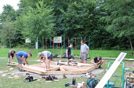 Der Untergrund des Pavillons wurde bereits fertig eingeschottert, und inzwischen haben die Arbeiten am Holzboden begonnen. Unsere fleißigen Burschen sind tatkräftig am Werk.