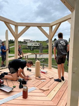 - Bauen eines Pavillons mit Sitzgelegenheit