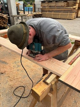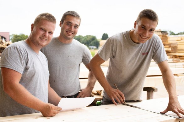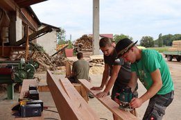 Das Holz-Team in der Feldmühle ist fleißig am Schleifen und Fräsen der Bretter.