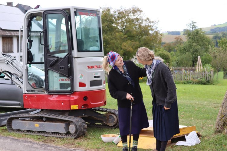 Auf Instagram und Facebook könnt ihr unsere beiden Omas auf ihrer spannenden Reise durch unser Projekt begleiten. 👵🏼👵🏼 Sie tauchen regelmäßig bei uns auf, schlendern von einem Ort zum nächsten und schauen sich neugierig alles an – vom Pflastern der Kapelle bis zum Bau des Pavillons. Dabei hören sie ganz genau zu, stellen die richtigen Fragen und sammeln die neuesten Informationen aus erster Hand. So erlebt ihr hautnah, wie unser Projekt wächst und könnt unsere Fortschritte direkt miterleben. 📸✨
