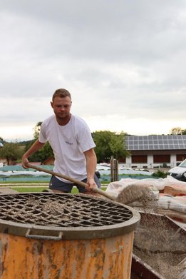 Als erster Schritt wurden die Umrisse des zukünftigen Platzerls händisch ausgehoben, um eine klare Grundlage zu schaffen. Anschließend rückte der Bagger an, um das Fundament für den Pflasterplatz auszuheben. Danach wurde der Splitt eingebracht und betoniert, sodass eine stabile Basis entstand. Die erste Nachtschicht konnte somit beginnen. Es steht uns noch viel Arbeit bevor!