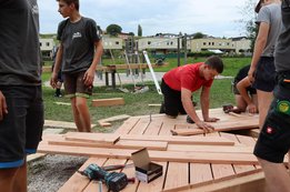 Spontan entstand später die Idee, eine großzügige Doppelliege für zwei mal zwei Personen zu bauen. Gemeinsam packten alle sofort mit an, und noch in derselben Nacht konnte das spontane Projekt fertiggestellt werden. Die Liegen werden künftig beim Fitnessparcours in der Karling aufgestellt.🪵