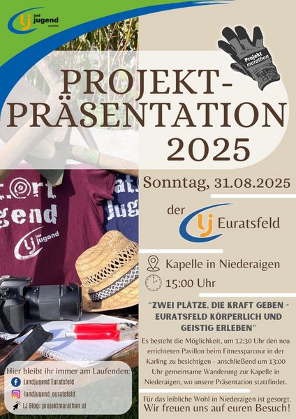 Nun die kurze Beschreibung des Videos: “In den letzten Jahren errichtete die Landjugend Euratsfeld im Zuge des Projektmarathons viele beliebte Treffpunkte im Ort. Diese möchten wir nun vorstellen.”