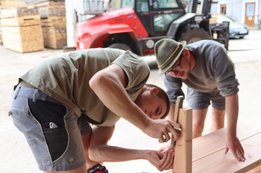 Richtet den Arbeitsplatz her, markieren das Holz und schneiden es genau zu.