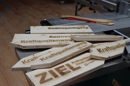 Währenddessen waren zwei unserer Mädls in der Tischlerei Dorner im Einsatz: Dort schnitten sie Wegschilder aus, die später mit Beschreibungen versehen und entlang der Wanderroute aufgestellt werden.🥾
