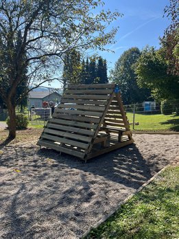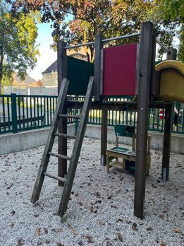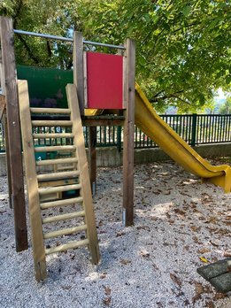 - Spielplatz auf “Vordermann” bringen, Sanierung des Seiledschungels, die Fallschutzeinfassung und das Rutschenhaus