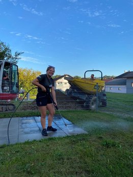 Zur selben Zeit wurde der Grundriss für die Pergola frei gebaggert wodurch wir anschließend betonieren konnten. Im Anschluss wurde das Dach fertig gestellt und der Boden mit Kies aufgefüllt.