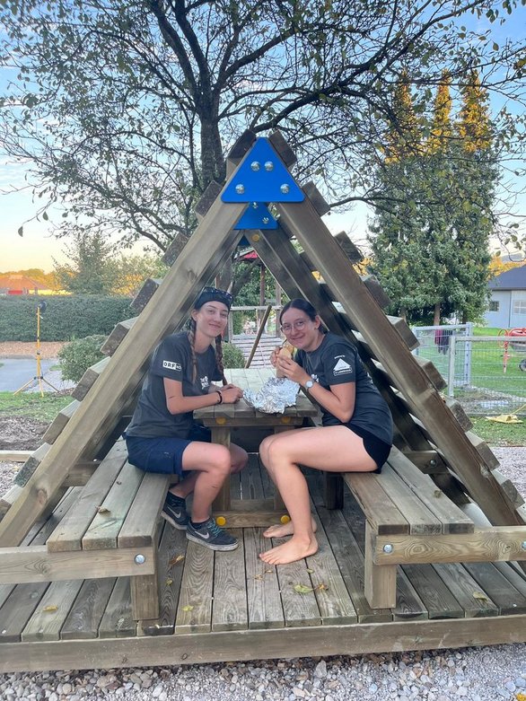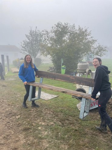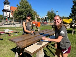 In der Zwischenzeit schliefen und strichen einige Mädls die neuen Bänke um Sitzgelegenheiten für unsere Pergola zu schaffen.