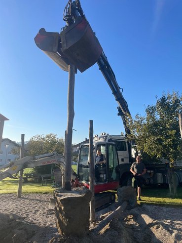 Um den Seiledschungel zu renovieren, hatten wir Unterstützung vom Wurzer - Bagger.
