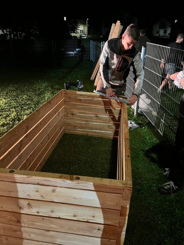 Zeitgleich wurden die Hochbeete zusammengeschraubt und aufgestellt,