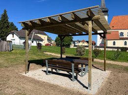 - Errichtung einer Pergola und erschaffen von Sitzgelegenheiten