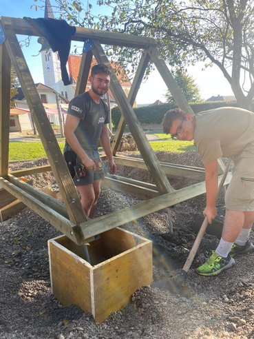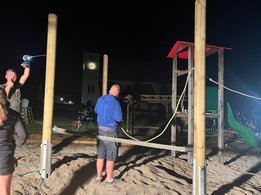 Anschließend fingen wir an das Kletter - Spielhaus einzubetonieren um die Sicherheit zu garantieren.