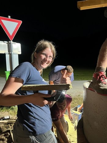 De Sunn geht unter, des hoit uns ned auf - da Scheinwerfer leicht nu laung auf unsa Projekt drauf!