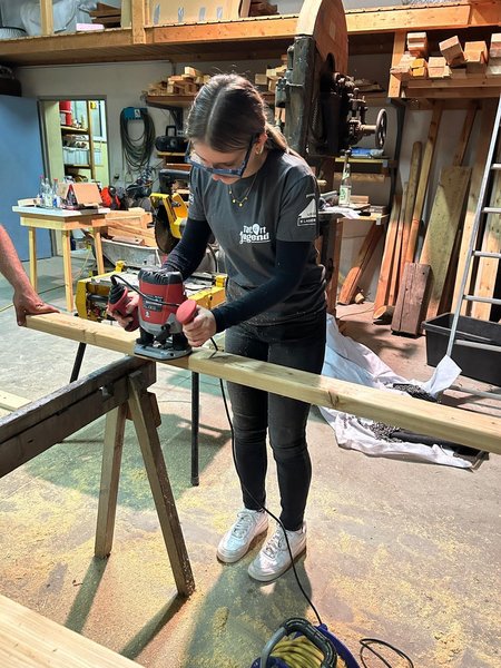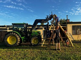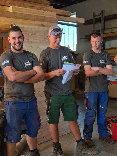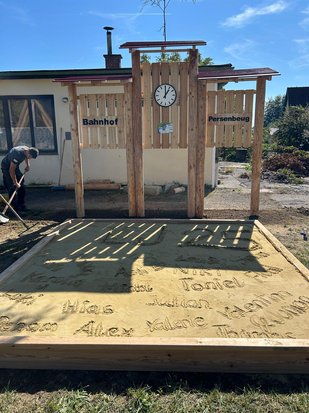 Während unser Bahnhof-Team bereits fleißig das Dachgerüst zusammenstellt, wird im Bauhof kreativ geplant: Die Wippe nimmt Form an – und ganz nebenbei stellt sich die wichtigste Frage des Tages: Was gibt’s zu Mittag?