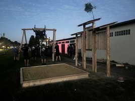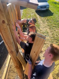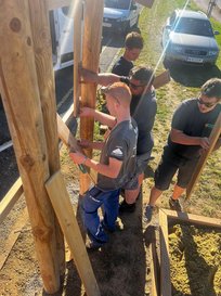 Am Abend starteten wir unser nächstes großer Vorhaben: die Aufstellung der Schaukel. Dafür waren Teamgeist, Muskelkraft und jede Menge Köpfchen gefragt – aber gemeinsam haben wir es geschafft!
