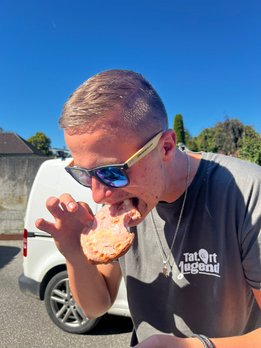 Nach einem erfolgreichen Vormittag gönnten wir uns eine wohlverdiente Pause mit Leberkäsesemmeln und Kuchen – Energie tanken auf die beste Art und Weise!