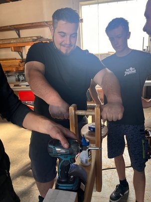 Falls uns noch Zeit übrigbleibt, sollen wir eine Wippe für die Kinder gestalten.