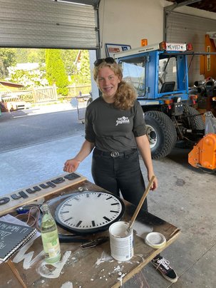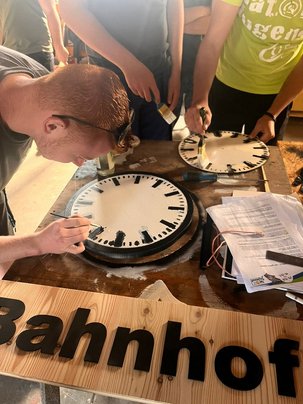 Außerdem widmeten wir uns den letzten Details für den Bahnhof. Die Uhr und die Beschriftung wurden für den letzten Schliff und ein stimmiges Gesamtbild lackiert.