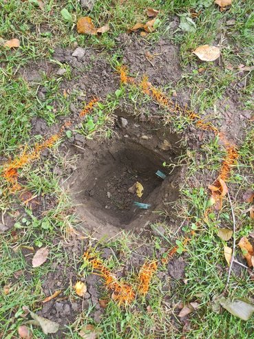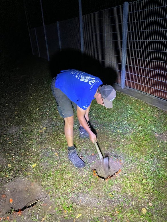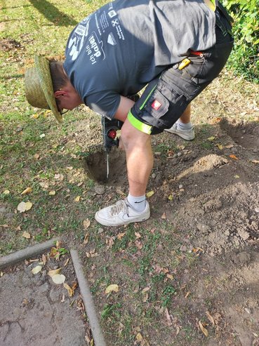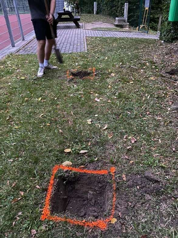 Mit Bohrhammer, Spaten und purer Muskelkraft ging es in die Tiefe. Der Gegner: harte Erde, widerspenstige Wurzeln und jede Menge Steine. Schweiß, Ausdauer und Agentenwille machten kurzen Prozess. Loch um Loch kommen sie dem Missionsziel näher.