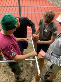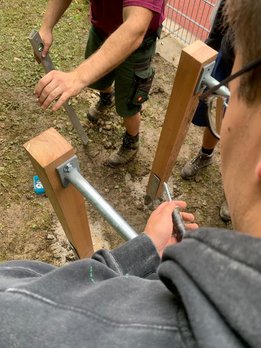 Parallel dazu herrschte Funkenflug in der Werkstatt. Unter Schutzmaske und mit präzisen Schnitten am Metall entstand die Klimmzugstange „Himmelsstange“. Hier wird künftig trainiert, den Griff nach oben zu wagen – so lange, bis Kraft und Ausdauer über das Limit hinausreichen.