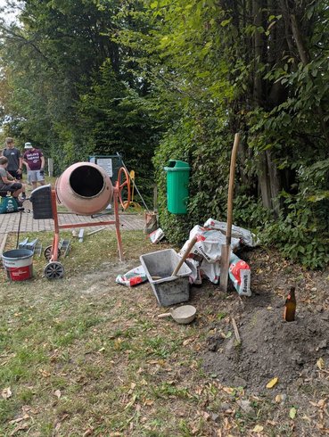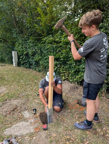 Team X – Operation Erdreich: Betonfundamente in Arbeit, neue Pfosten bereits gesetzt.