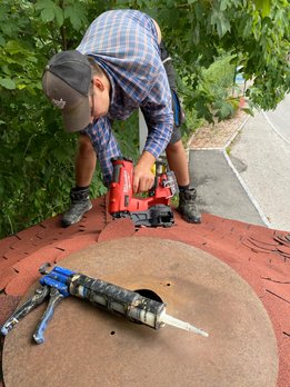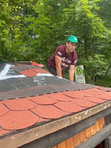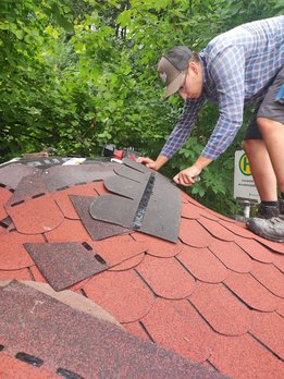 Team Y – Operation Hütte: Dachdeckung läuft, neue Schutzhülle im Aufbau.