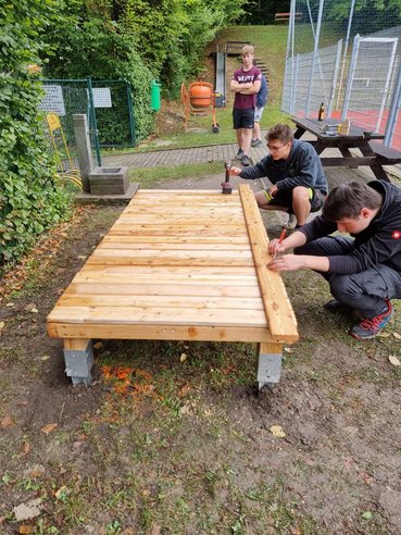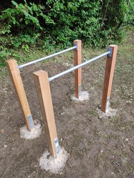 Heute rückten die Agenten aus, das bereitgestellte Material lag schon einsatzbereit am Schauplatz. Ohne Zögern begannen die Arbeiten am Agentenpodest, das als zentrale Kommando-Basis dienen wird. Parallel dazu wurde der Balance-Weg präzise ausgerichtet – eine geheime Trainingsstrecke für Körperkontrolle und Geschick. Auch die Dipstange, bekannt als Kraftstation der Agenten, wurde erfolgreich montiert und in Position gebracht.