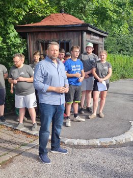 Im Anschluss setzte sich die Gruppe – etwa 60 Personen stark – in Bewegung. Über den markierten F.I.T.-Weg wurde das Trainingscenter erreicht, ein symbolischer Marsch entlang der frisch gesicherten Route. Jeder Schritt führte näher zum Ziel: den neu errichteten Geräten, die nun erstmals im Einsatz präsentiert wurden.
