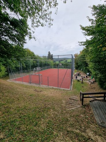 Errichtet einen modernen Fitnessbereich mit ca. 5 Stationen am Sportplatz.