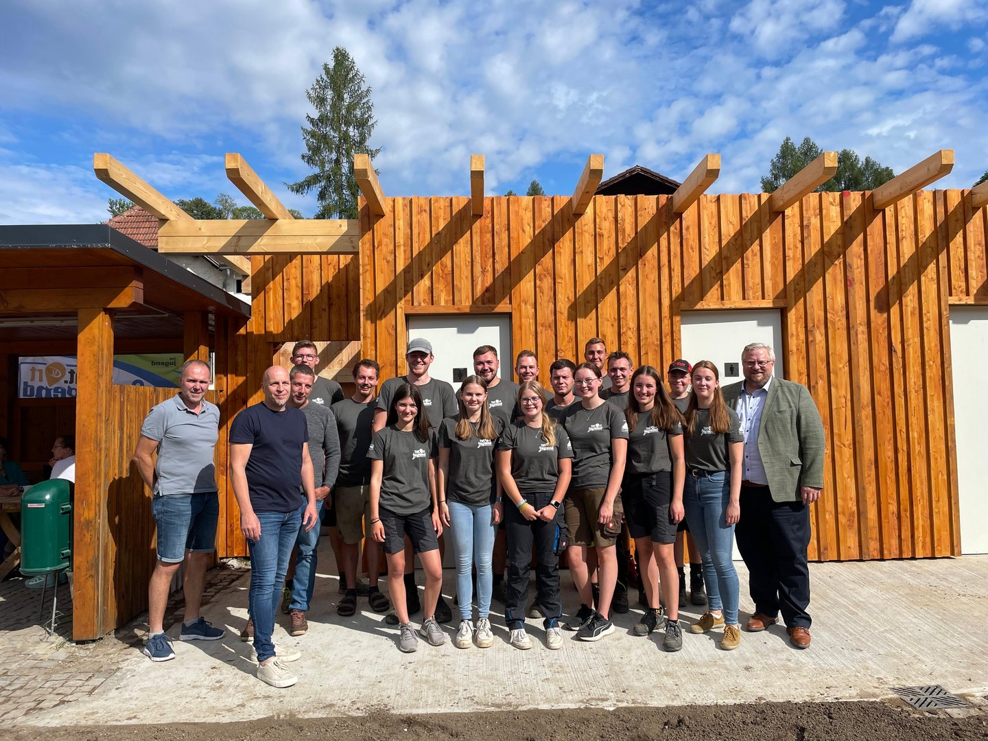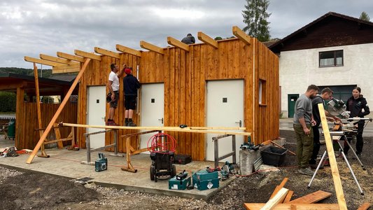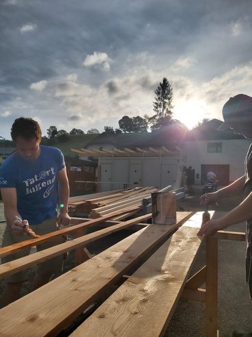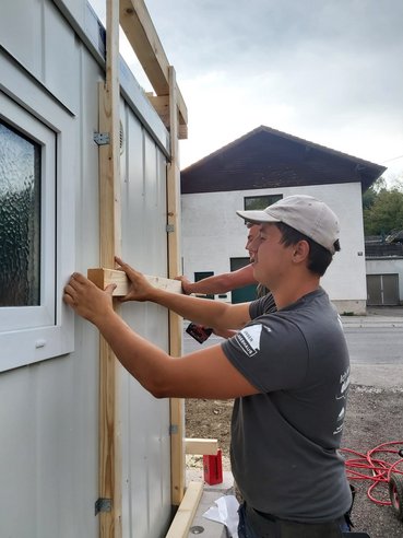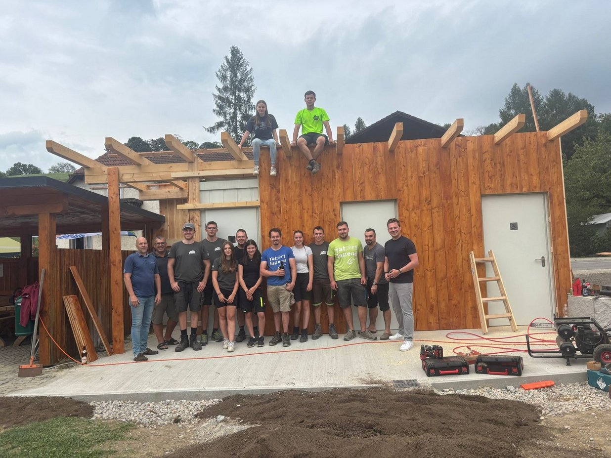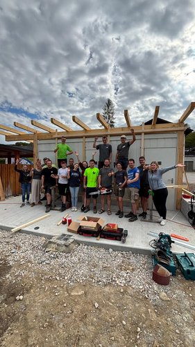 - Weil diese Aufgaben wie jedes Jahr ein Klacks für uns sind, wurde uns als Zusatzaufgabe die Errichtung eines Lagerraums zwischen Container und Carport gestellt.