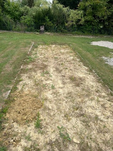 Gestern wurde auch der Humus verteilt, angeglichen und Grassamen gesät.