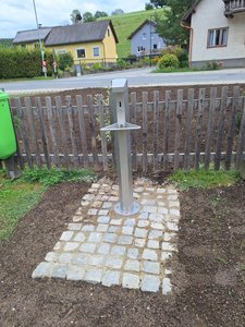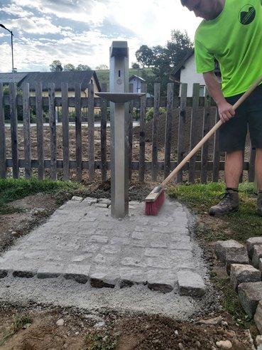 Gleichzeitig wurden nebenan rund um den Trinkbrunnen Pflastersteine gelegt, um den Platz zu verschönern.