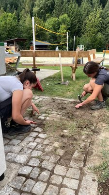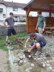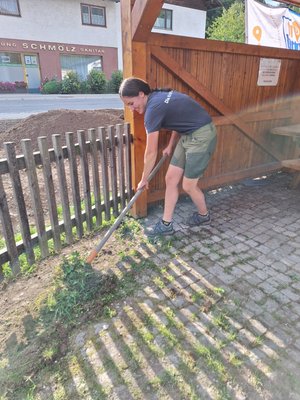 Beispielsweise wurden die Tische und Bänke unter dem Carport wieder abgeschliffen und das Unkraut zwischen den Pflastersteinen entfernt, um das Platzerl wieder in alter Schönheit erstrahlen zu lassen. Besonders beim Unkraut jäten wurde unsere Geduld und unser Durchhaltvermögen auf die Probe gestellt…