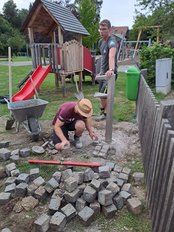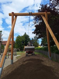 - Erneuerung des Fallschutzes für die Schaukel mittels Bagger und Anschüttung des Starthügels für die Seilrutsche.