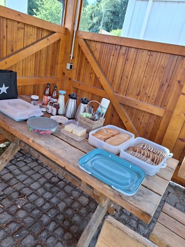 Zwischendurch haben wir uns alle für's Frühstück von Fam. Mühlbauer zusammengefunden und uns gestärkt.