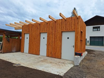 Neu angefangen wird der Bau des Lagerraums zwischen WC-Container und Carport.