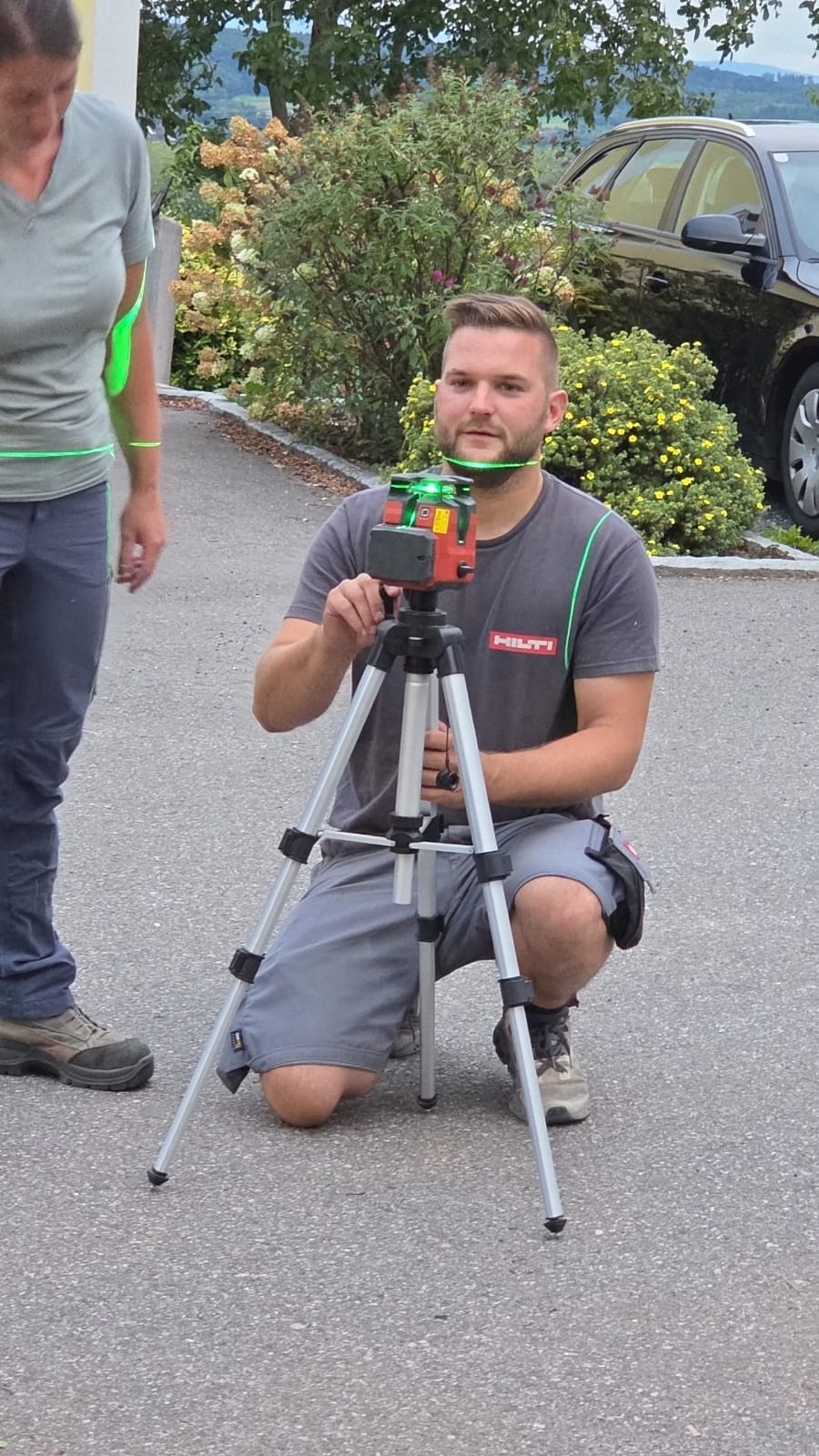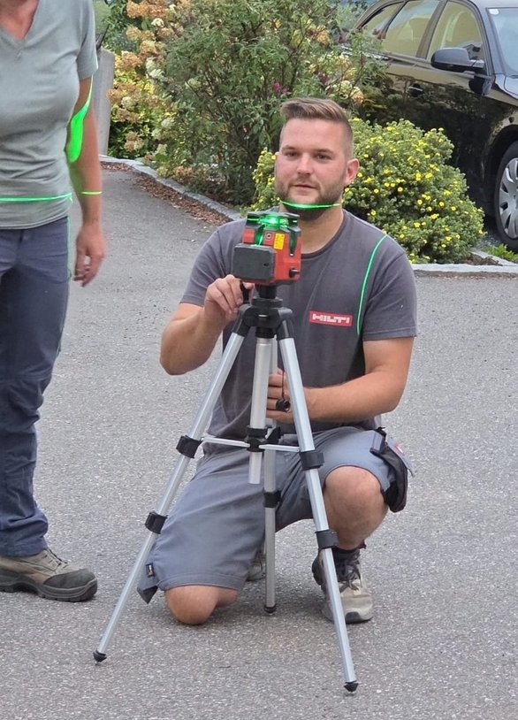 - Laser wurde aufgestellt um anschließend die Steher zu befestiegen.